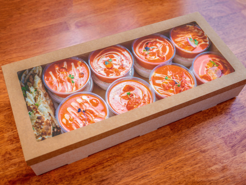 Our famous creamy butter chicken with fluffy basmati rice and warm flaky naan, served in individual portions for easy sharing. Feeds up to 8