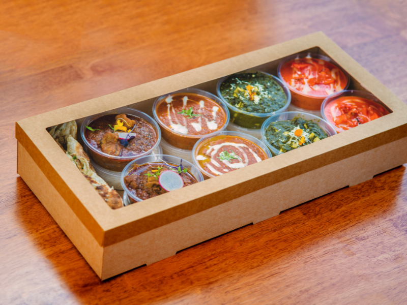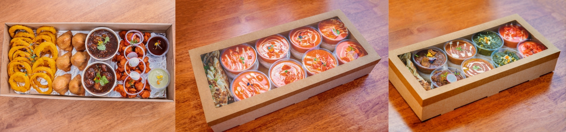 Our famous creamy butter chicken, tender saag chicken, rich beef Rogan Josh, and creamy daal makhani — two portions of each, served with fluffy basmati rice and warm flaky naan breads. Feeds up to 8 people